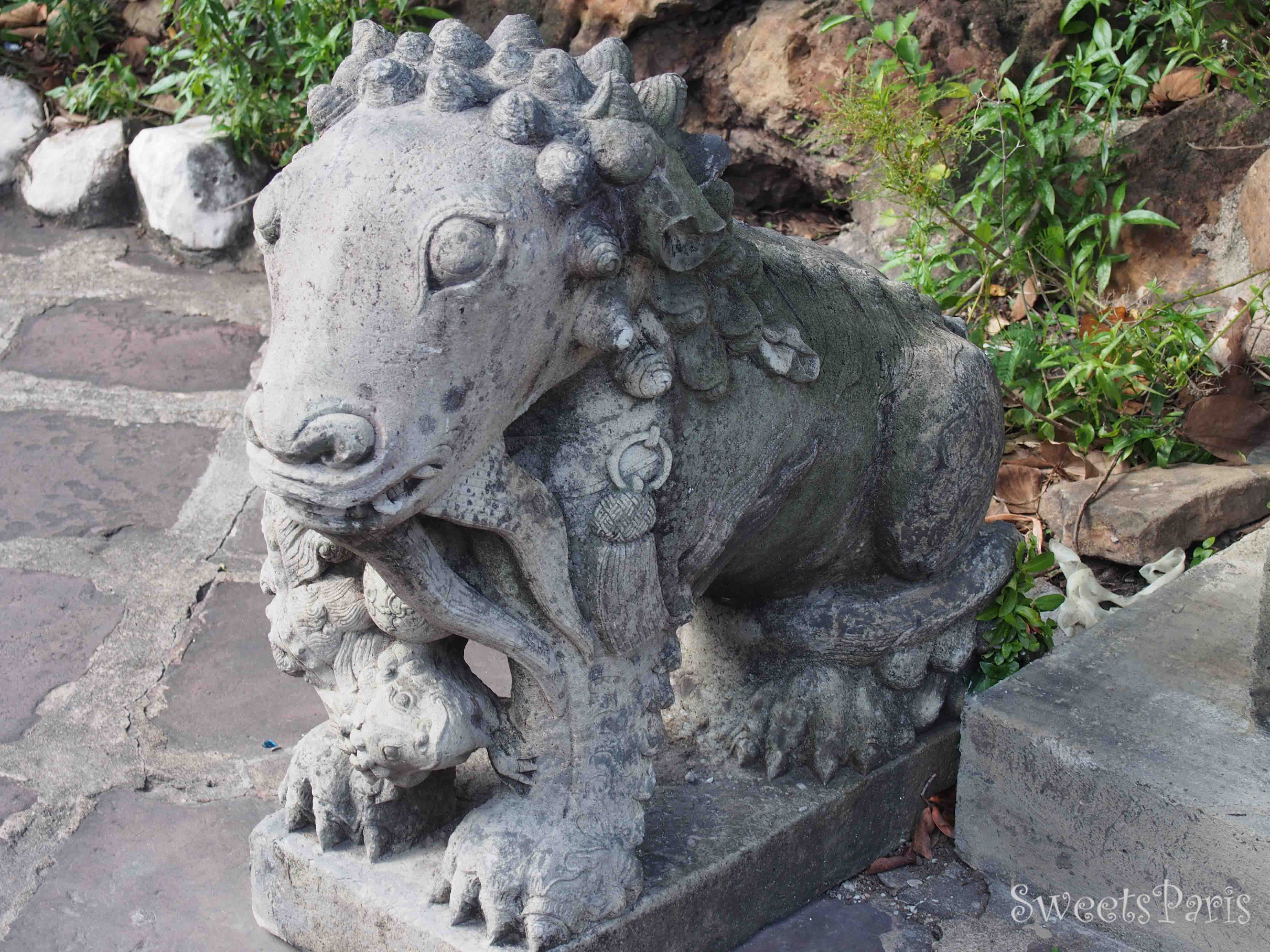長さ5メートル、幅1.5メートルの大きな足の裏で、ぺったんこの偏平足は“悟りを開いた者のしるし”なんだそう。足の裏には、仏教と深い関わりを持つバラモン教の宇宙観が、108の絵で表されているそうです。