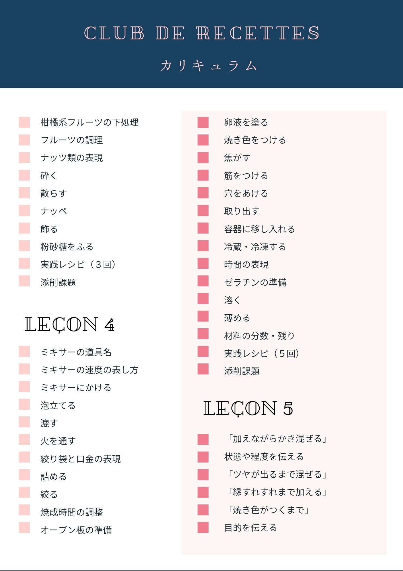 Club de recettes はパティスリーのレシピの知識を身につけるという今までにない講座です。