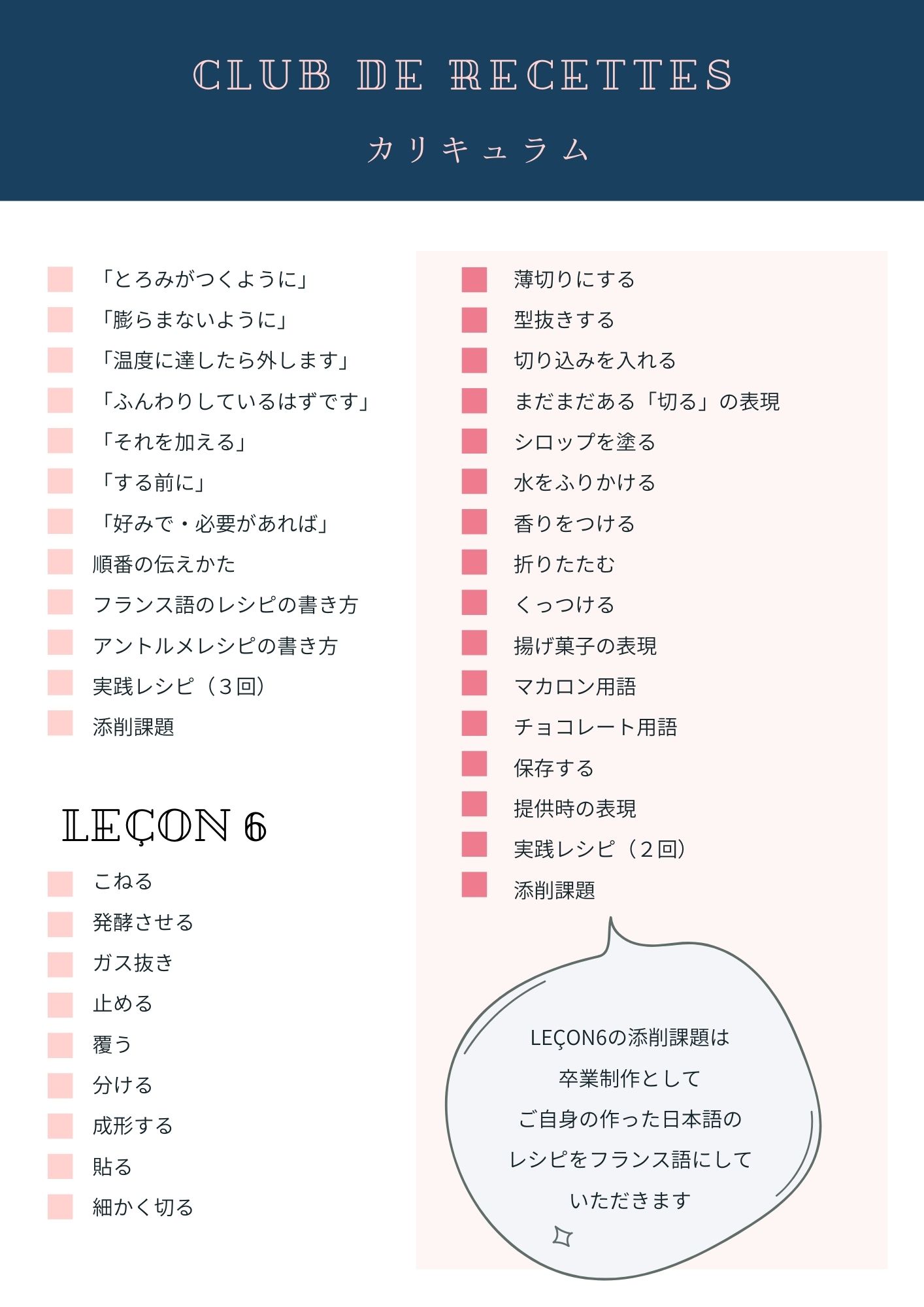 この Club de recettes とは、フランス語のお菓子のレシピが読めて書けるようになる講座です。